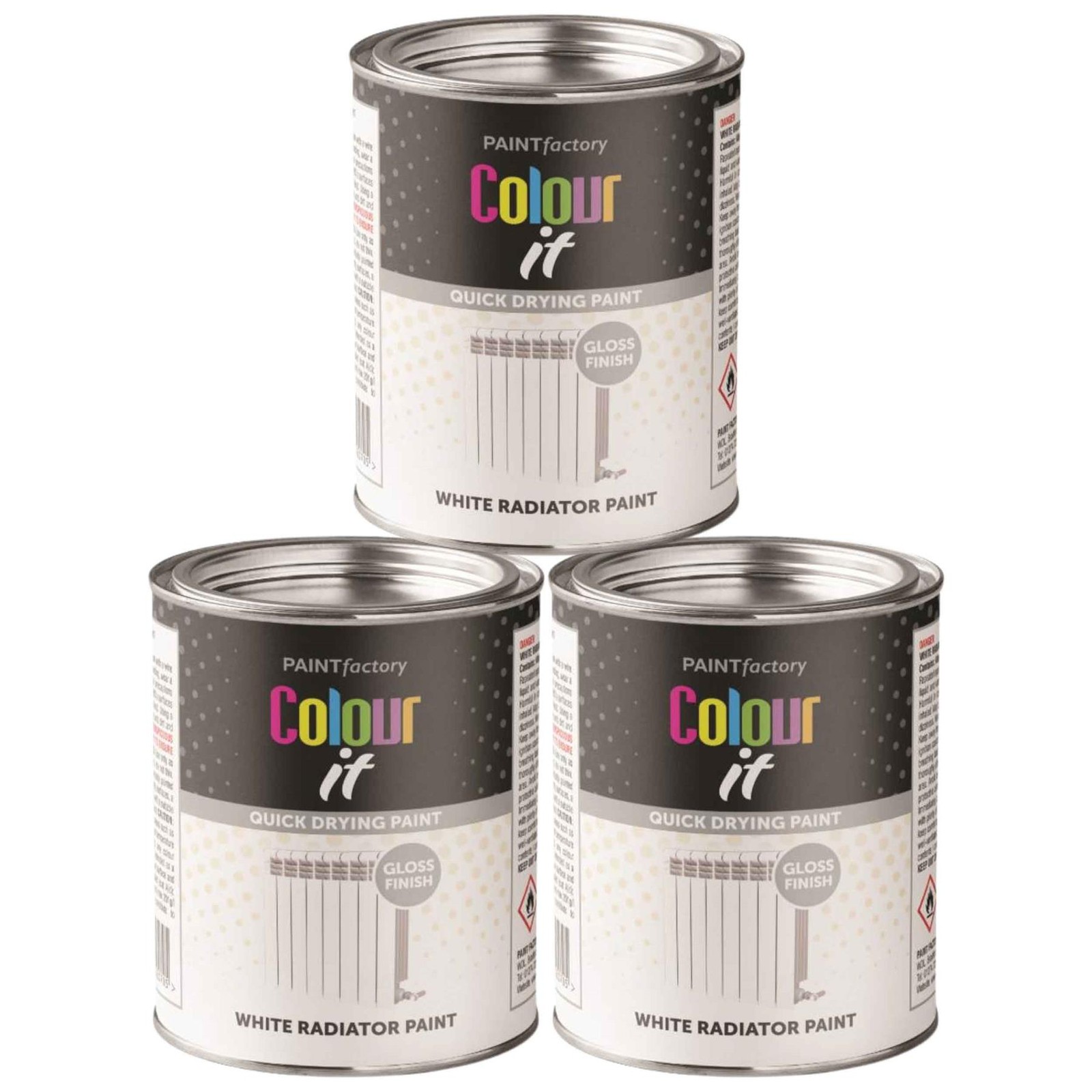 3x Paint Factory White Gloss Radiator Tin Paint Fast Dry Interior Exterior 300ml