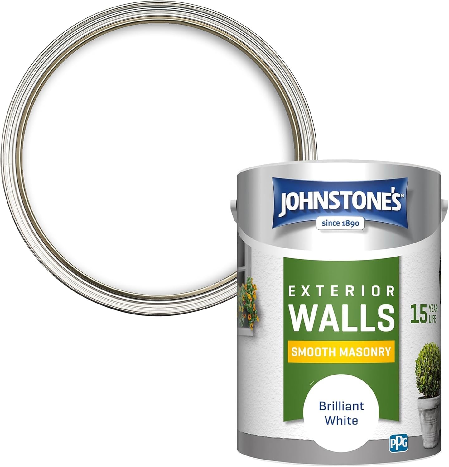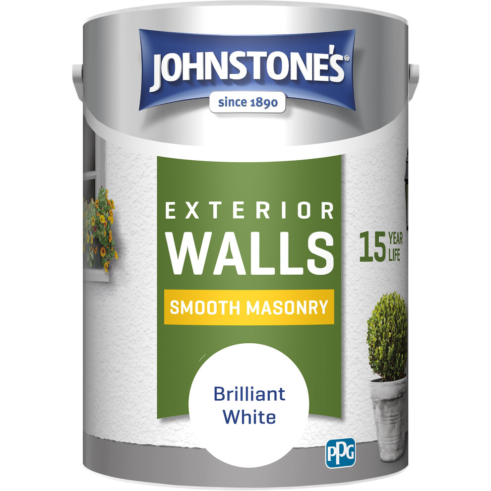 Johnstone's Exterior Smooth Masonry Paint - Brilliant White | Brick, Concrete, Patio & Outdoor Walls |15 Years Protection, Weather & Dirt Resistant |