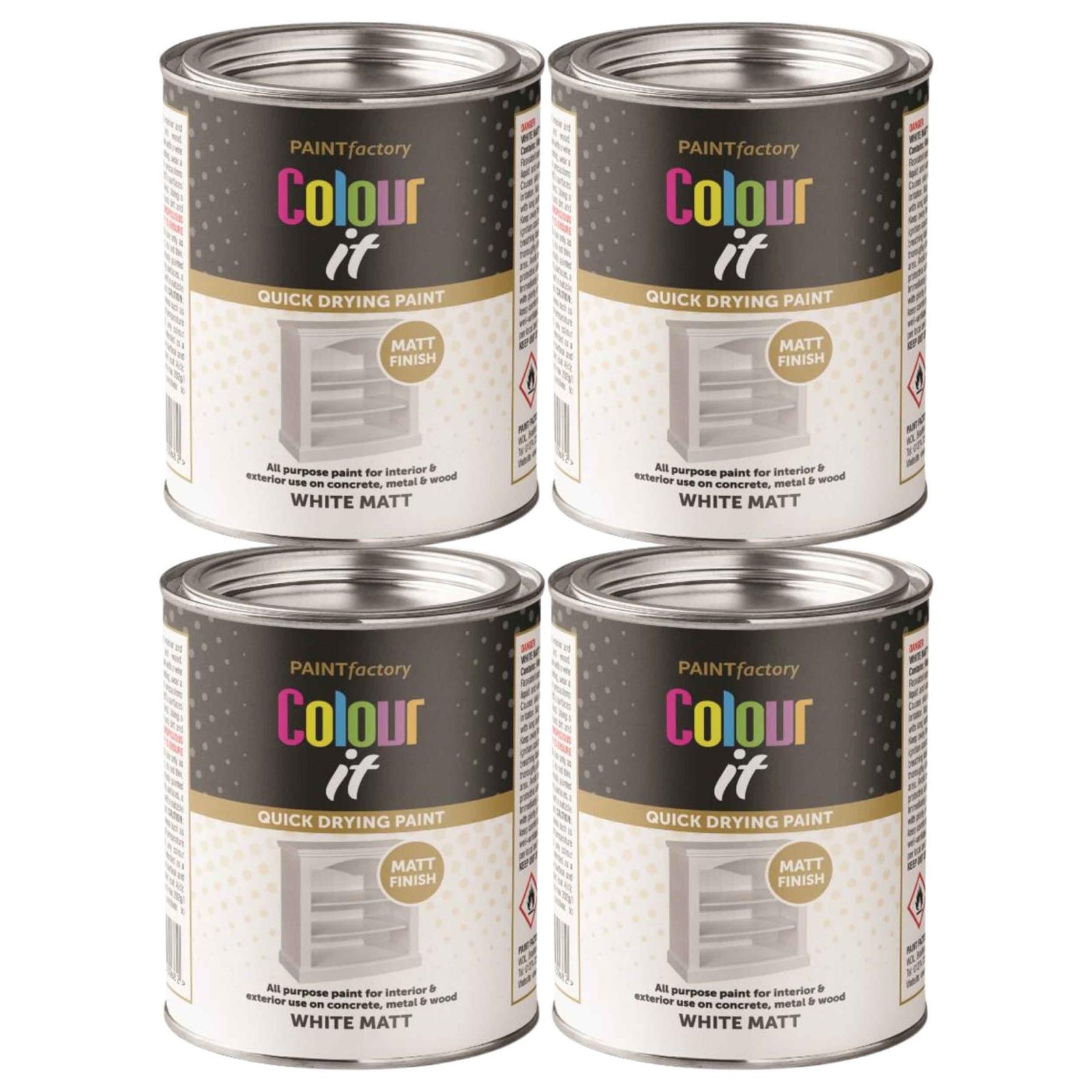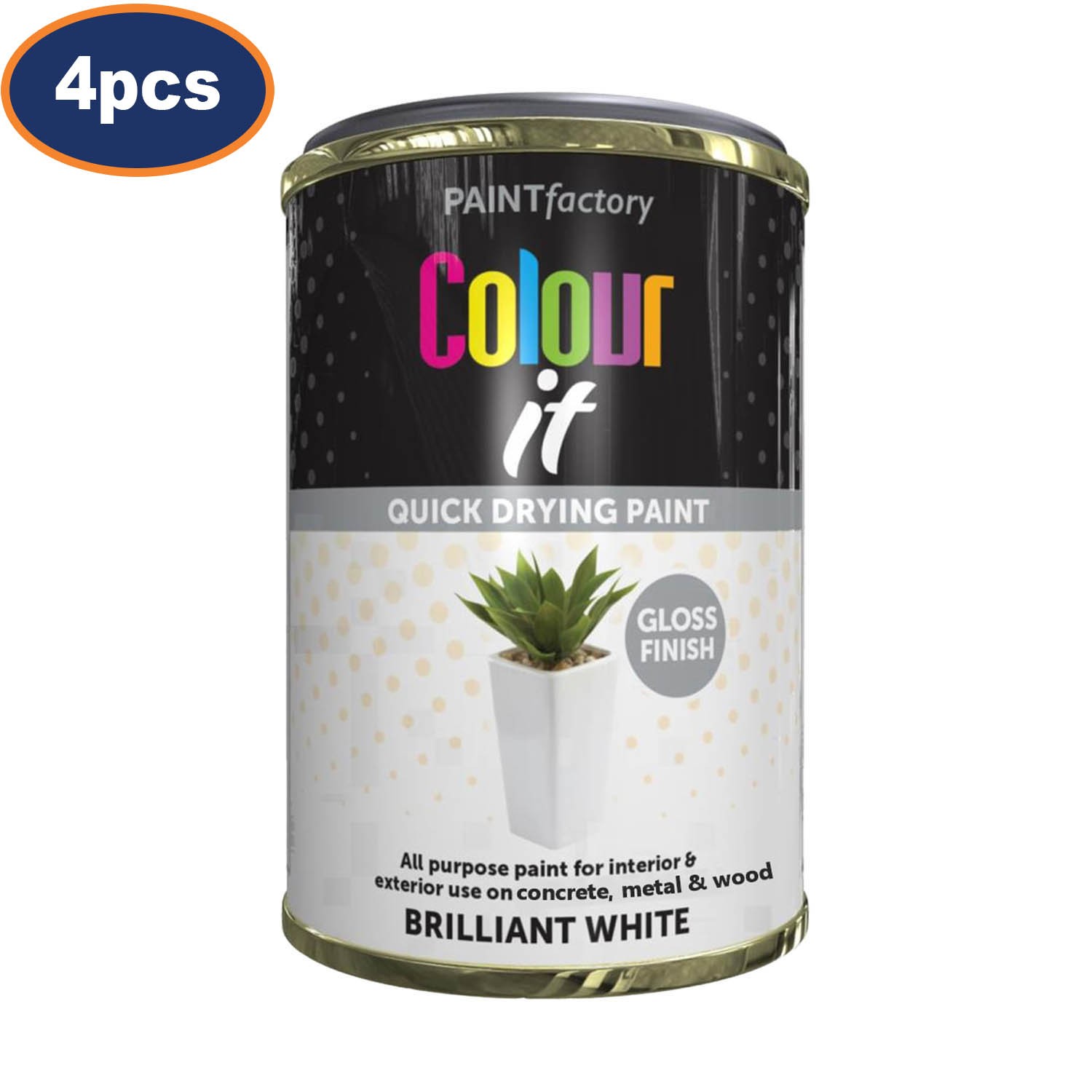 4Pcs Colour It Paint Tin White Gloss Finish Quick Dry Interior Exterior 300ml