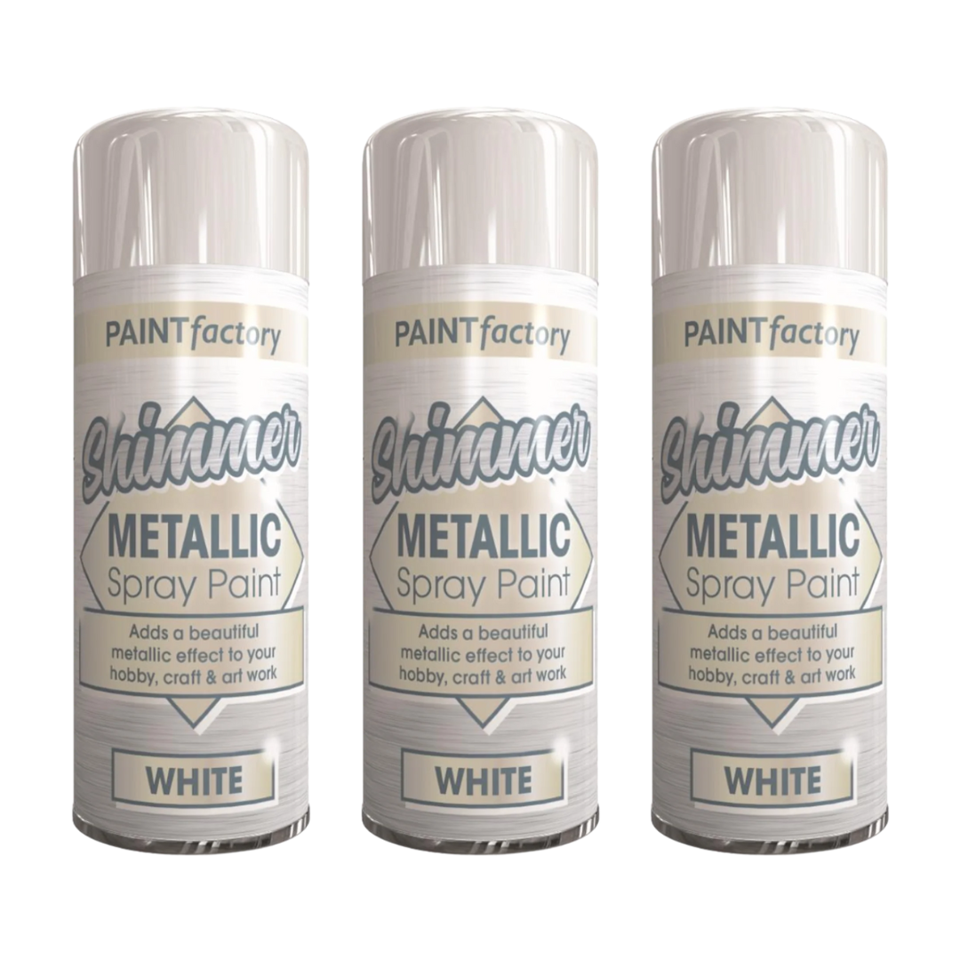 3x Paint Factory DAZZLING WHITE Interior Exterior Metallic Spray Paint 200ml Can