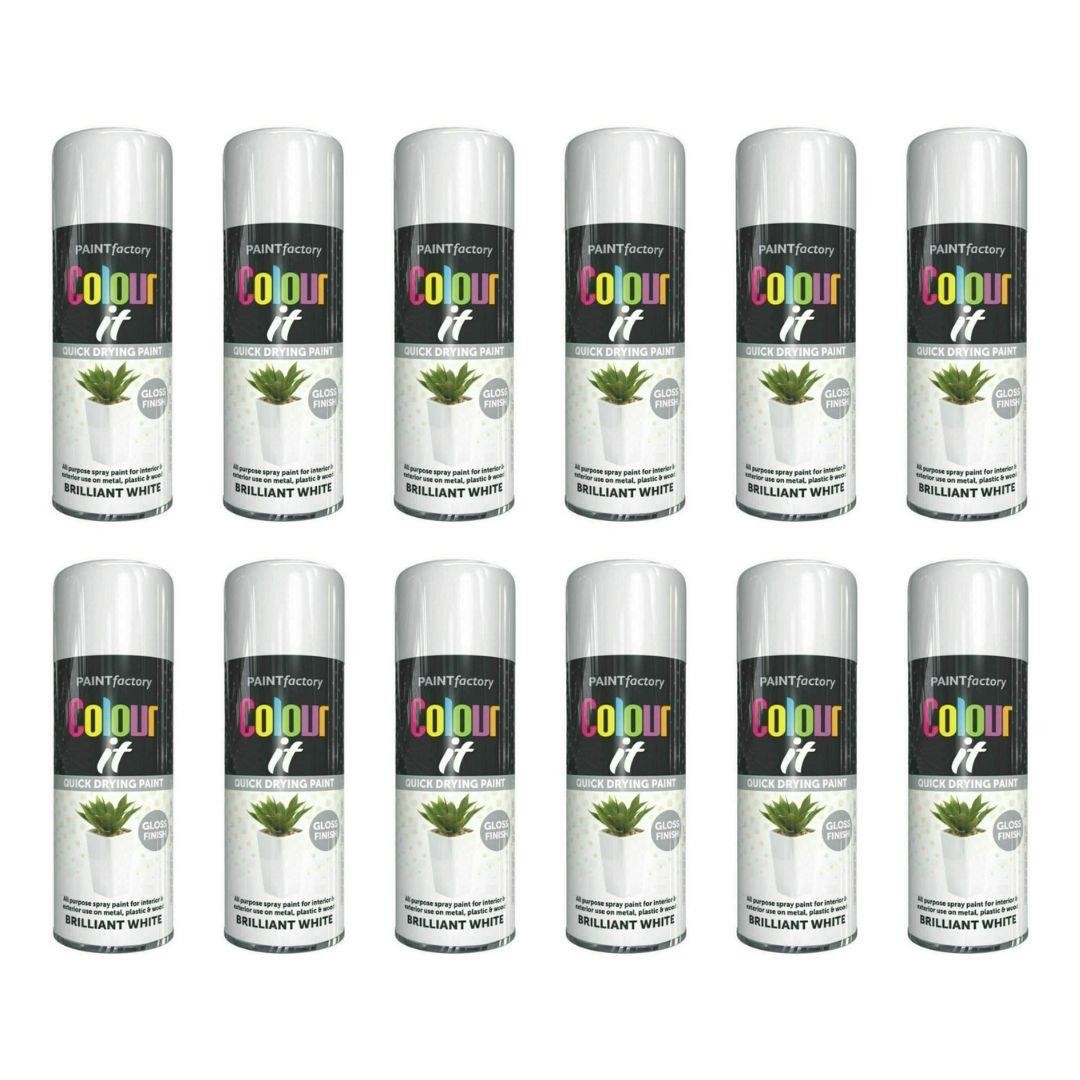 Paint Factory White Gloss Spray Paint Interior & Exterior 250ml - Pack of 12