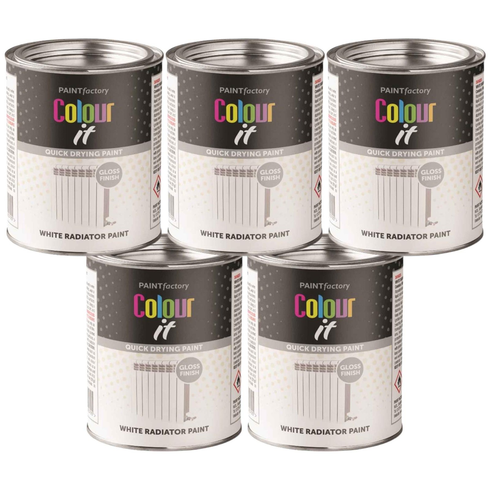 5x Paint Factory White Gloss Radiator Tin Paint Fast Dry Interior Exterior 300ml