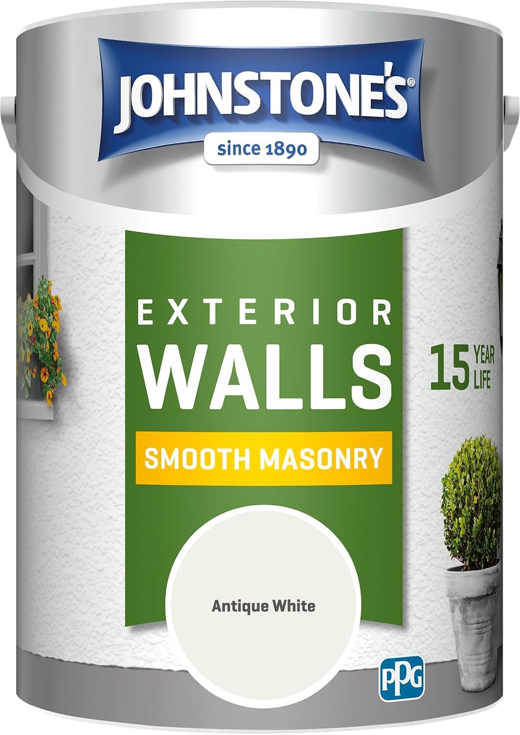 Johnstone's Johnstone's, Exterior Smooth Masonry Paint, Antique White, Up to 15 Years Protection, Weather & Dirt Resistant, 60m? Coverage Per Tin, Dry in 1-2