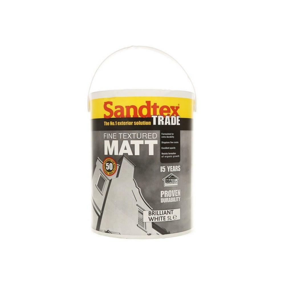 Sandtex Textured Masonry Paint Fine Brilliant white 5L Exterior Painting Stone