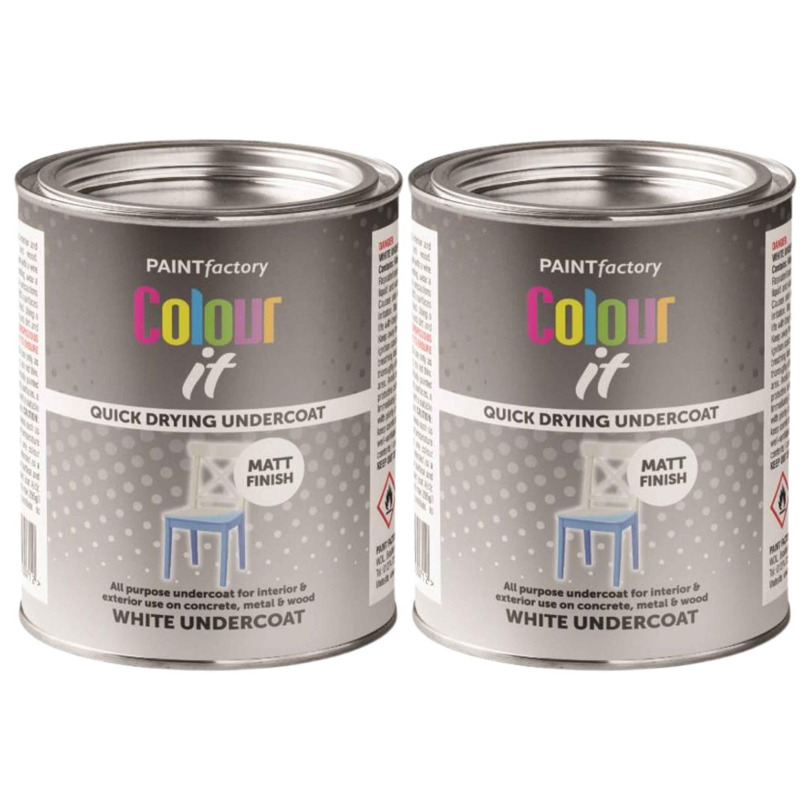 2x Paint Factory White Matt Undercoat Tin Paint Fast Dry Interior Exterior 300ml