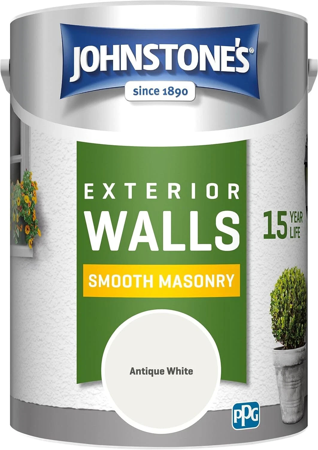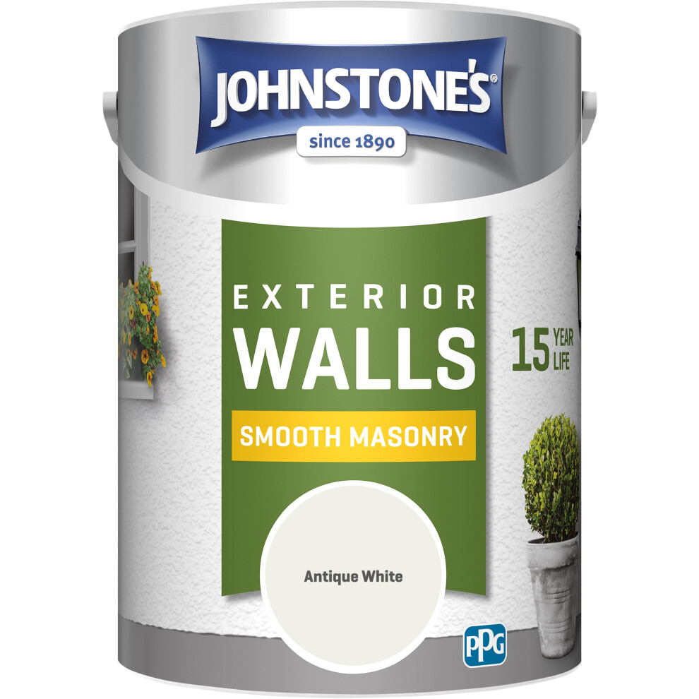 Johnstone's, Exterior Smooth Masonry Paint, Antique White, Up to 15 Years Protection, Weather & Dirt Resistant, 60m? Coverage Per Tin, Dry in 1-2