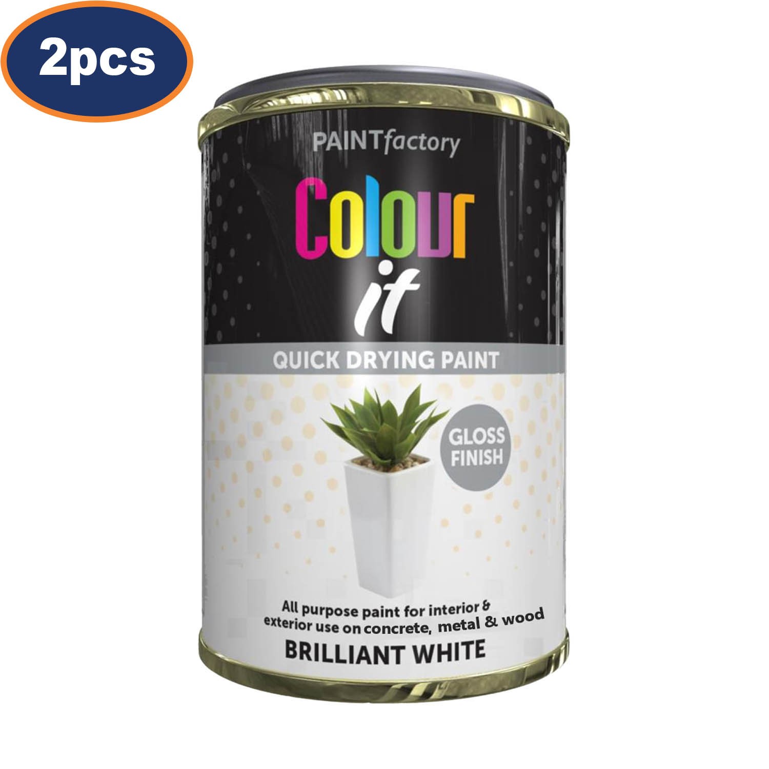 2Pcs Colour It Paint Tin White Gloss Finish Quick Dry Interior Exterior 300ml