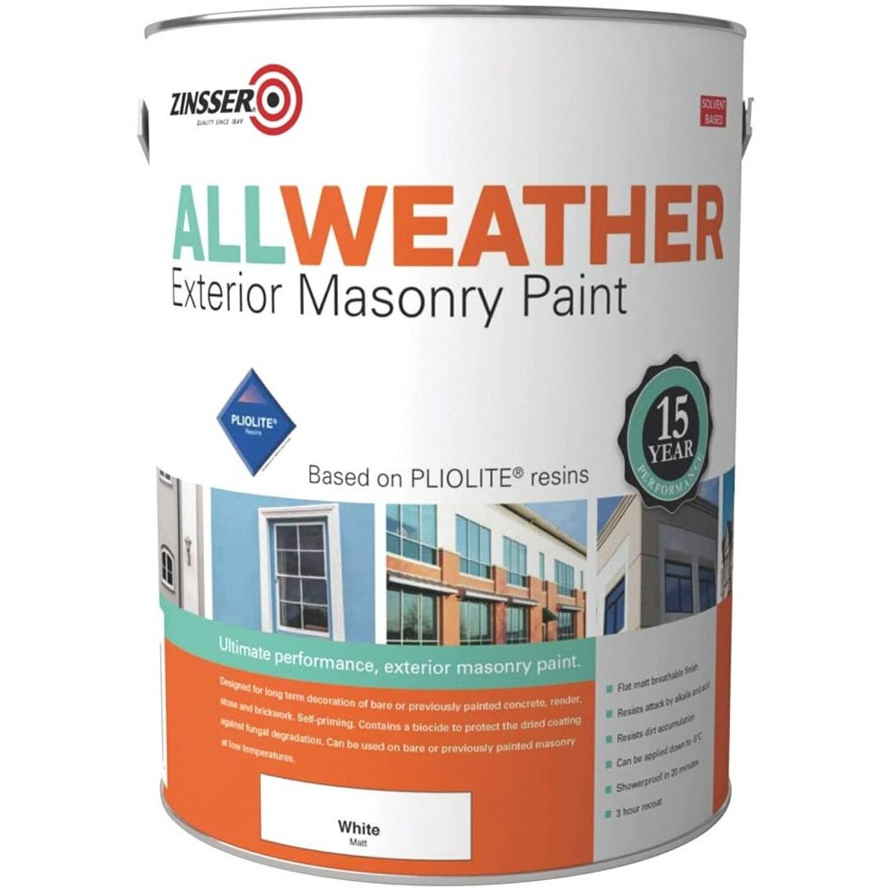 Zinsser All Weather Exterior Masonry Paint Solvent-Based White 5 Litre