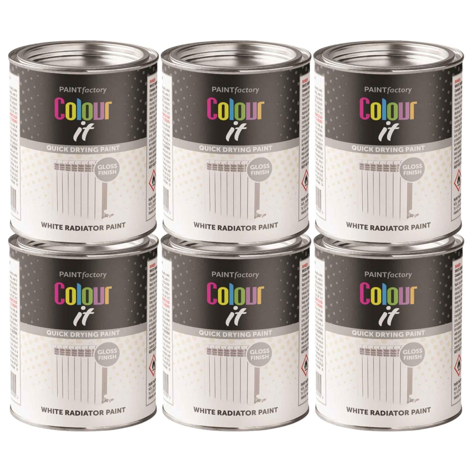 6x Paint Factory White Gloss Radiator Tin Paint Fast Dry Interior Exterior 300ml