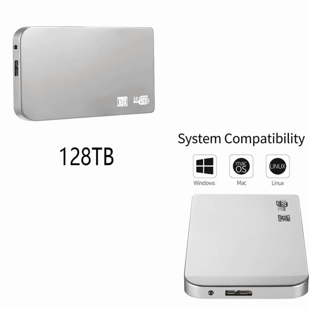 128TB Portable USB 3.0 External Hard Drive â Slim, Compatible with PC, Mac & Laptop (Silver)
