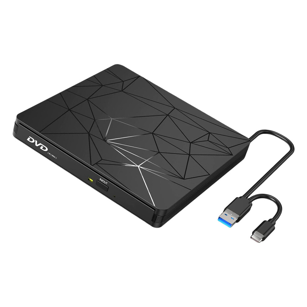 External CD DVD +/-RW Drive, USB 3.0 & USB-C Portable ROM Burner Player Reader Writer Rewriter Disc Drive,Black