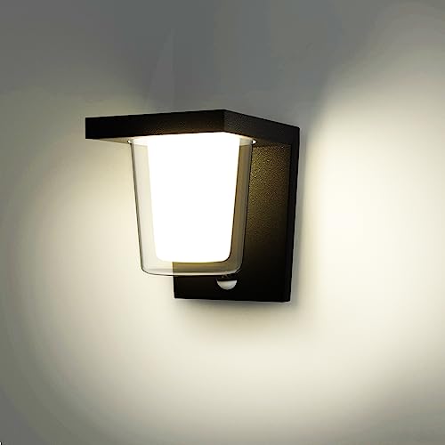 NBHANYUAN Lighting Outdoor Wall Light with Sensor,IP44 SUS304 Stainless Steel Outside PIR Light Fixture External Wall Lamp for Patio,Porch,Black,3000K Warm Light 1000LM