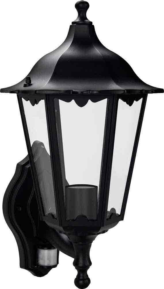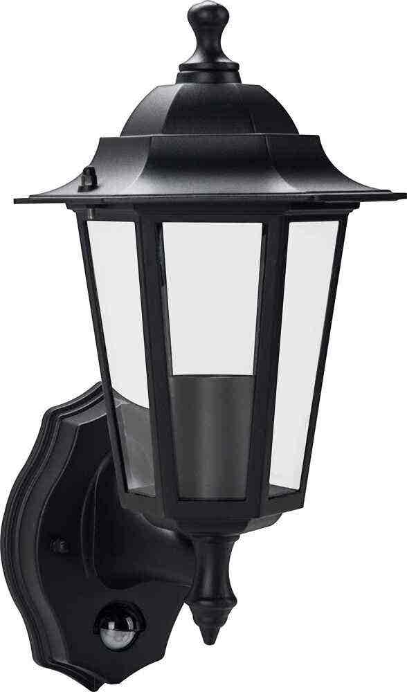 6 Sided Coach Lantern External Wall Light - 60w - PIR Sensor - IP44 & IK06 - Black