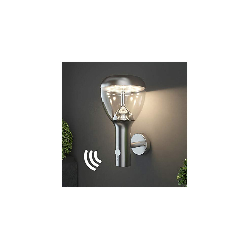 NBHANYUAN LightingOutside Light with Motion Sensor LED Outdoor Wall Light with PIR Silver Finish Stainless Steel Wall Lamp Fixture External