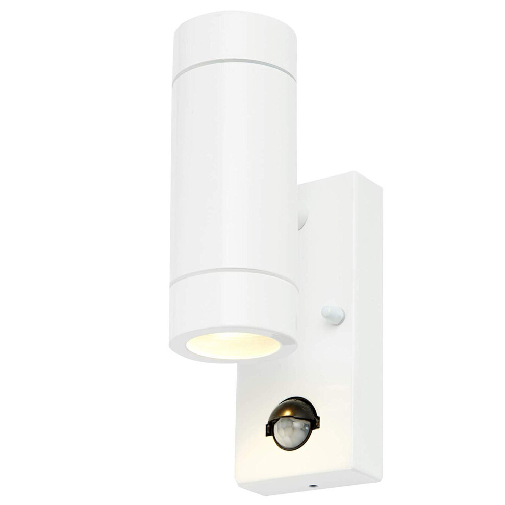 Modern Gloss White External Up/Down Outdoor Security PIR Motion Detector Wall Light IP44 Rated