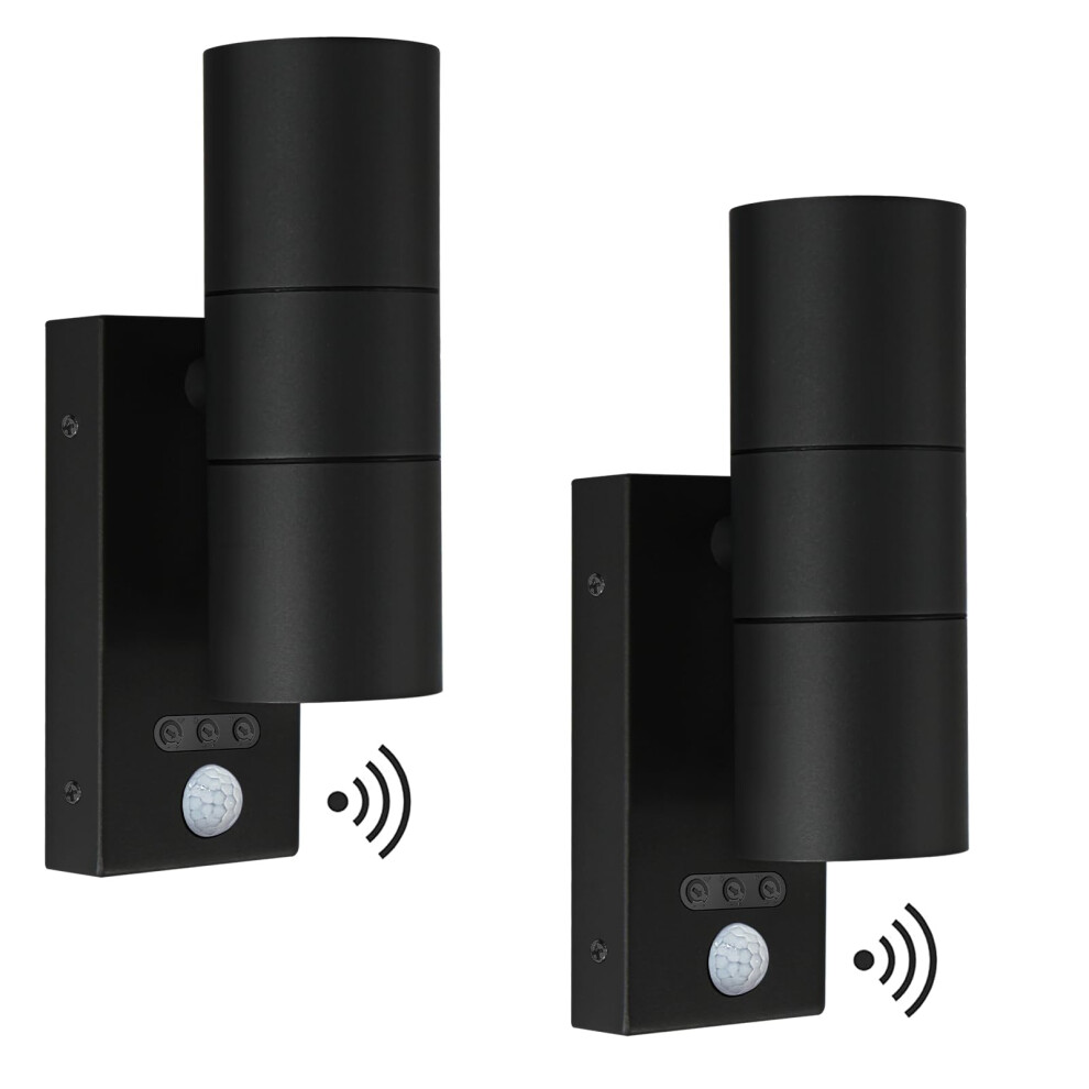 Kerry Outside Wall Lights with Sensor, IP65 Waterproof Up Down Outdoor Lighting, External Pir Wall Mount Security Light, Black Stainless Steel Exterior Light Mains Powered - 2 Pack (Bulb Excl.)