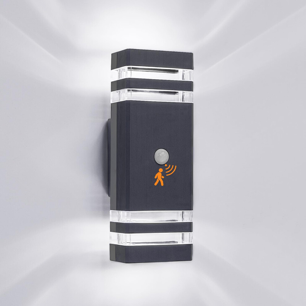 Kerry Outside Wall Lights with Sensor, IP65 Waterproof Up Down Outdoor Lighting, External Pir Wall Mount Security Light, Anthracite Grey Stainless