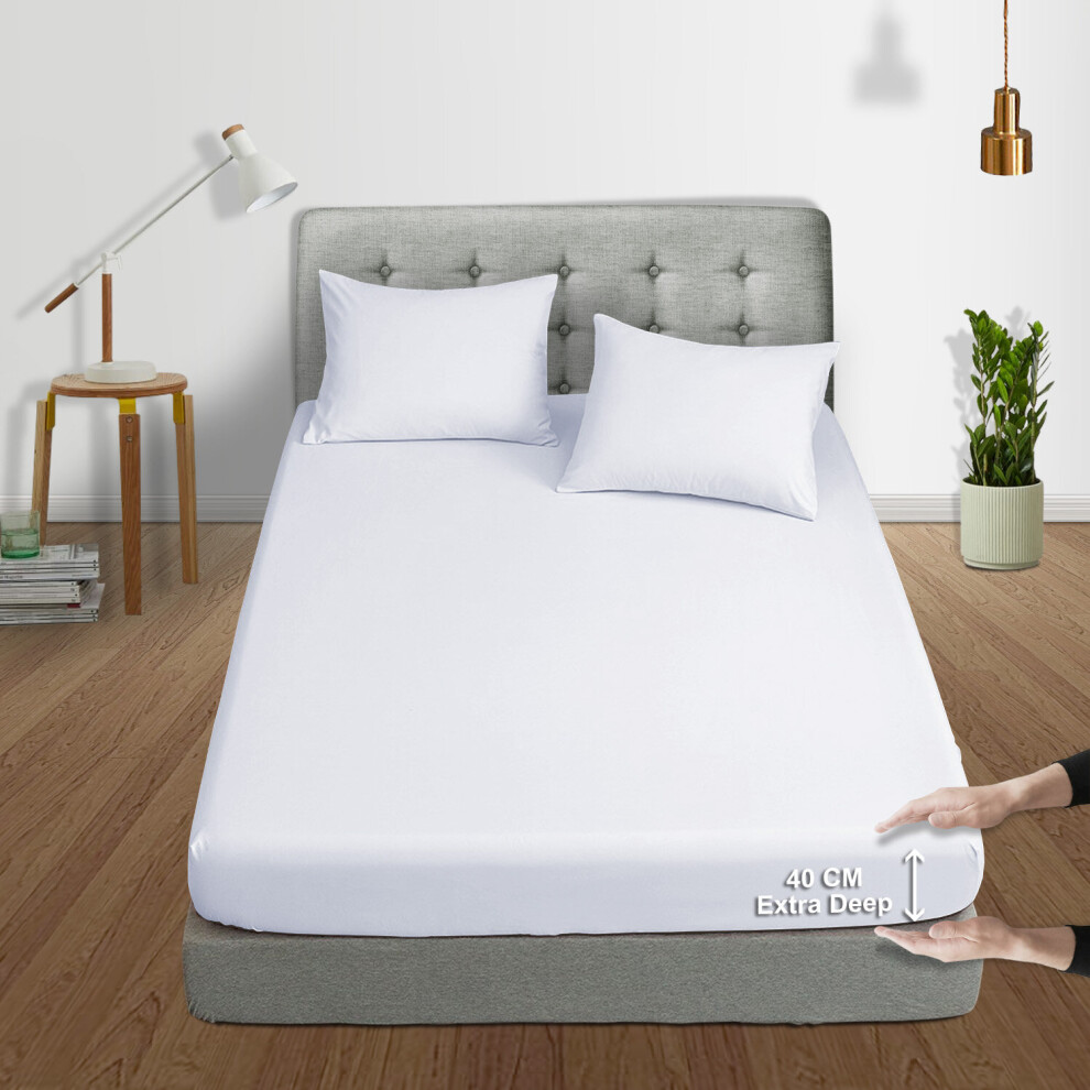 (White, King) Extra Deep 40cm Fitted Bed Sheets Poly Cotton Single Double King Size