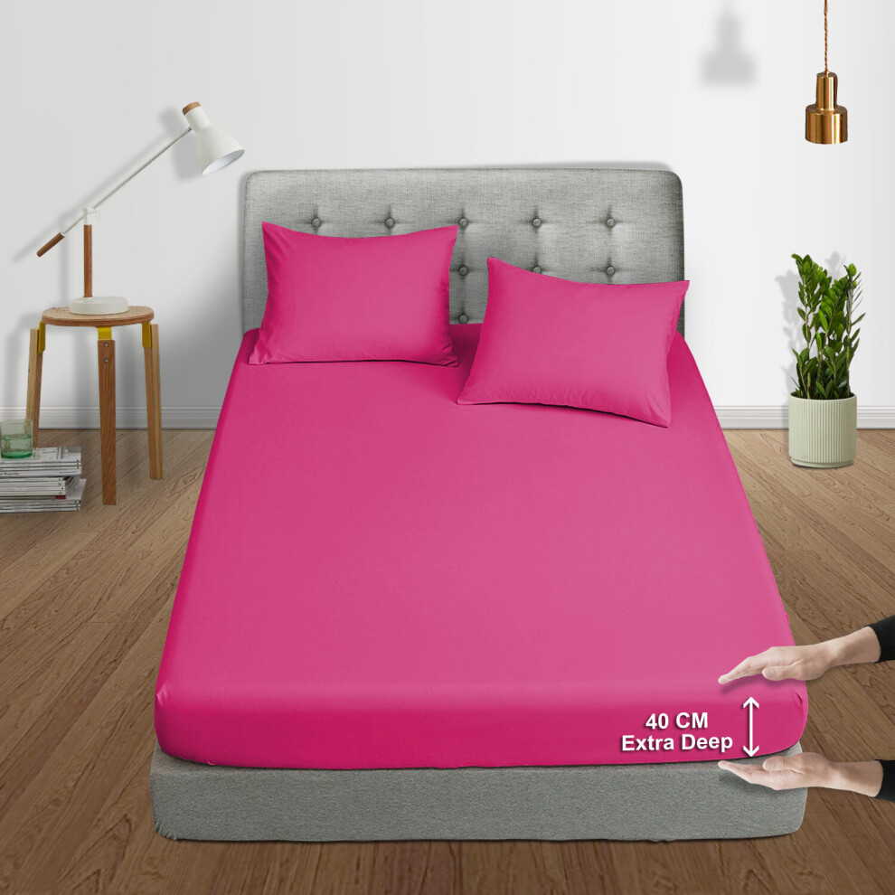 (Pink, King) Extra Deep 40cm Fitted Bed Sheets Poly Cotton Single Double King Size