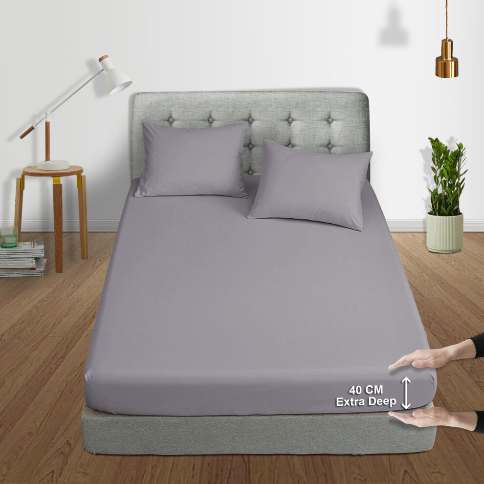 (Grey, Pillow Case Only) Extra Deep 40cm Fitted Bed Sheets Poly Cotton Single Double King Size