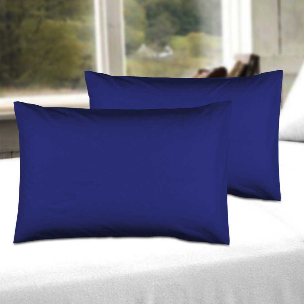 (Navy Blue, Pillow Case Only) Extra Deep 40cm Fitted Bed Sheets Poly Cotton Single Double King Size