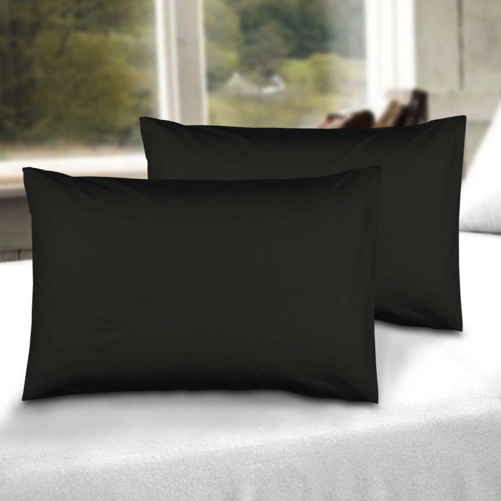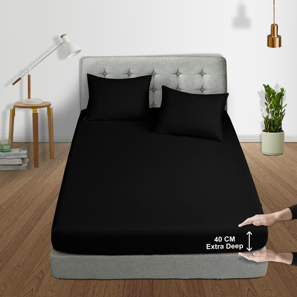 (Black, Pillow Case Only) Extra Deep 40cm Fitted Bed Sheets Poly Cotton Single Double King Size