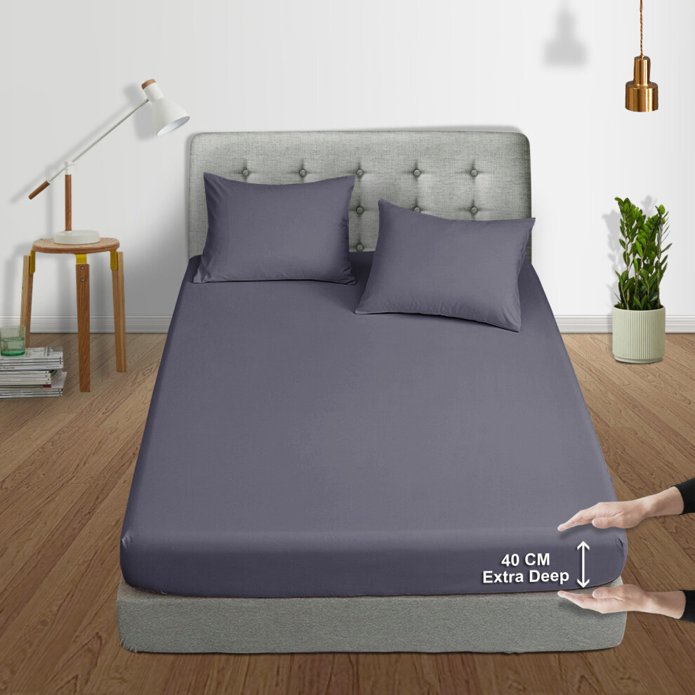 (Charcoal, Pillow Case Only) Extra Deep 40cm Fitted Bed Sheets Poly Cotton Single Double King Size