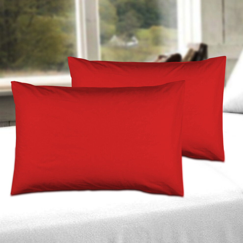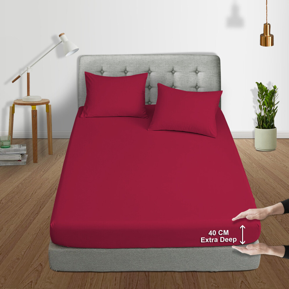 (Red, Pillow Case Only) Extra Deep 40cm Fitted Bed Sheets Poly Cotton Single Double King Size