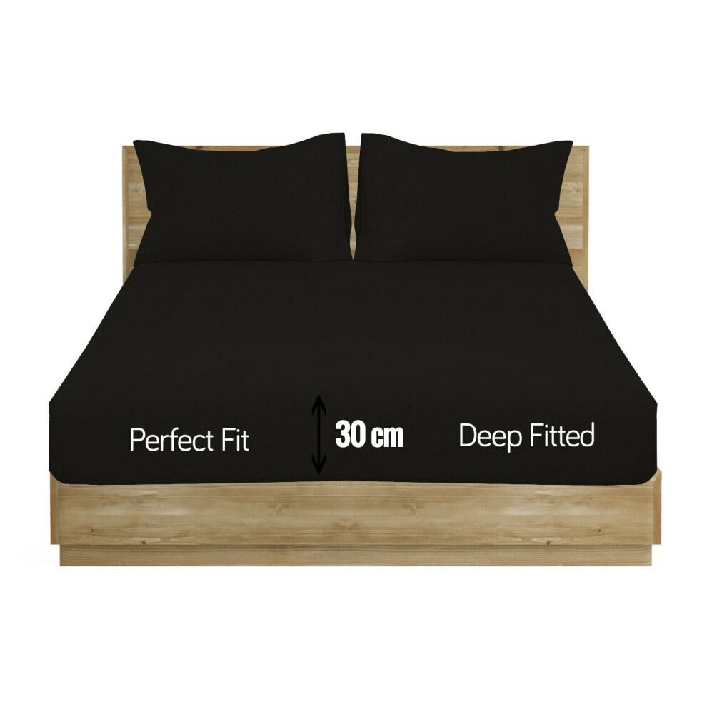 (Black, Single) Extra Deep Fitted Sheet Bed Sheets- 12 Colours