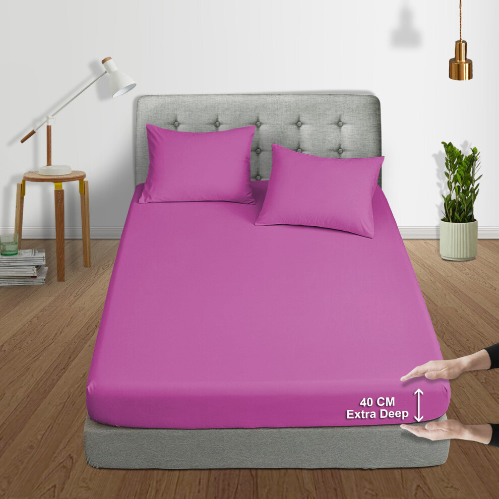 (Purple, Pillow Case Only) Extra Deep 40cm Fitted Bed Sheets Poly Cotton Single Double King Size