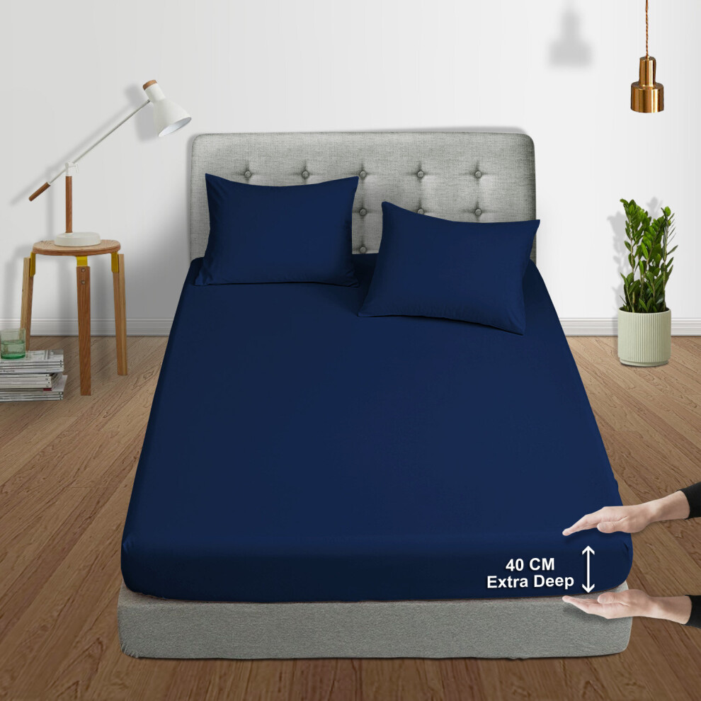 (Navy Blue, Double) Extra Deep 40cm Fitted Bed Sheets Poly Cotton Single Double King Size