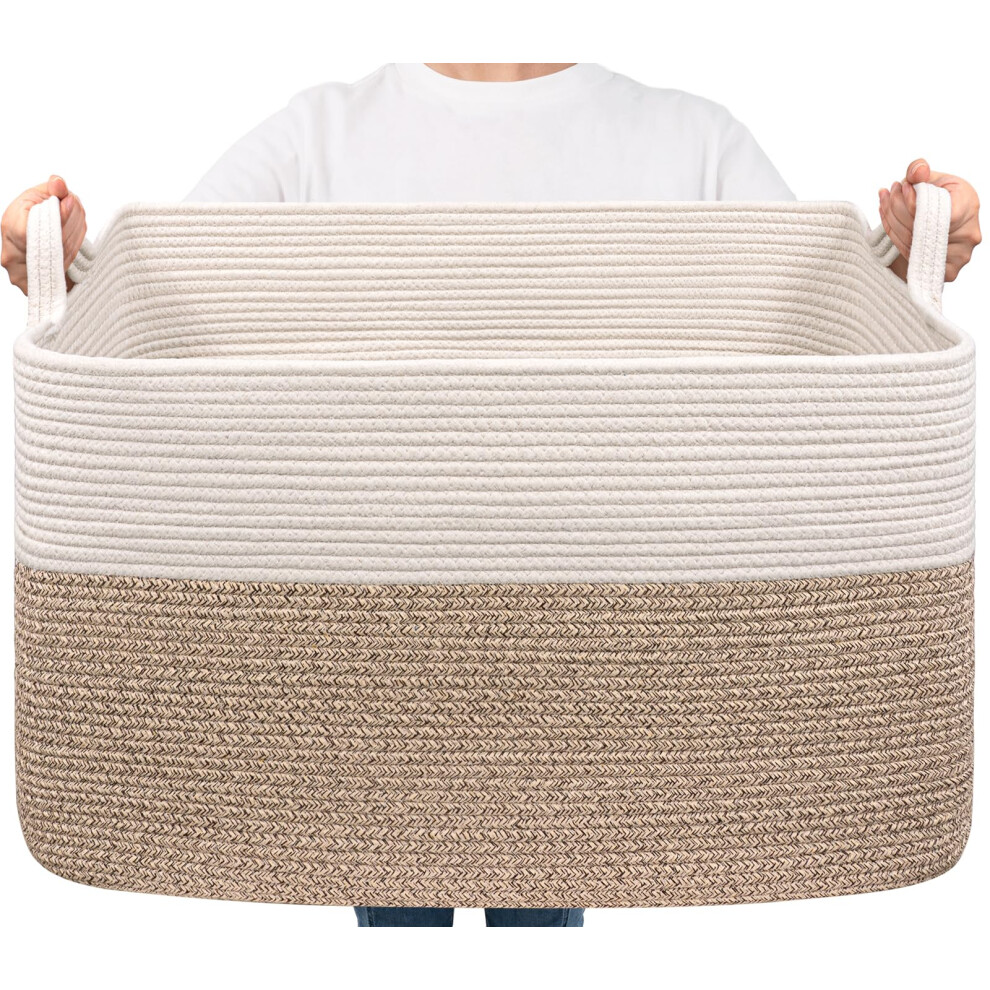 2X Extra Large Woven Storage Basket,Cotton Rope Basket for Living Room, Laundry, Toys - Gradient Brown