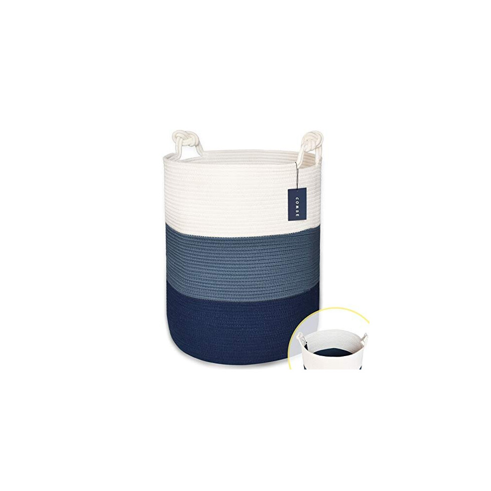 COMSE Extra Large Blanket Basket, Storage Basket, Tall Rope Laundry Basket, 40 x 55 CM, Cotton Rope Basket, XXXL Laundry Basket, Toy Basket, Wove