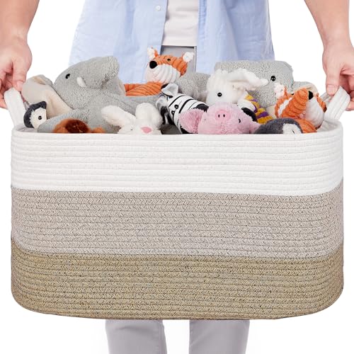Extra Large Gray Storage Basket (23.6"x17"x12") â Soft Woven Cotton Rope Bin for Living Room, Blankets, Toys, Pets â Compatible with Home