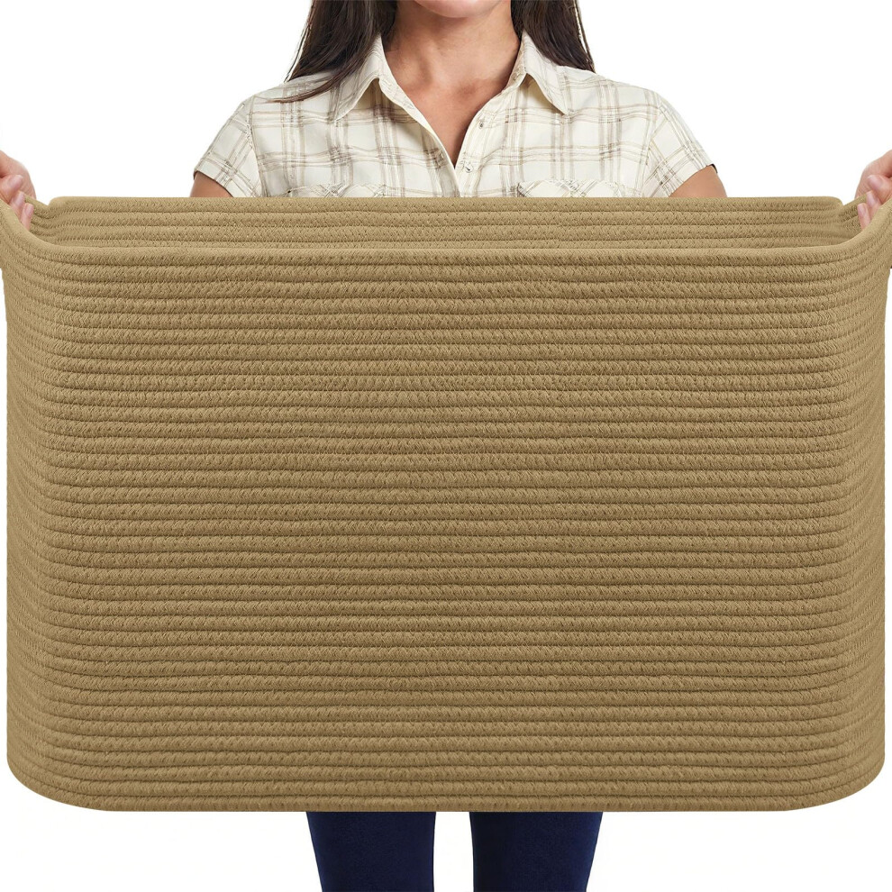 Blanket Extra Large Woven Storage Basket,Cotton Rope Basket for Living Room, Laundry, Toys - Gradient Brown