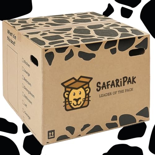 SAFARIPAK - 10 Pack Strong Extra Large 52cm x 52cm x 40cm Reusable Cardboard Storage Packing Moving House Boxes with Carry Handles and Room List Checkboxes - 108 Litres Capacity