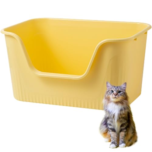 Vealind Extra Large Cat Litter Trays with High Sides and Low Entry Cat Litter Box High Back 64 x 45 x 33 CM, 100% Leak Proof Anti Splash Cats Litter Box XL (Yellow)