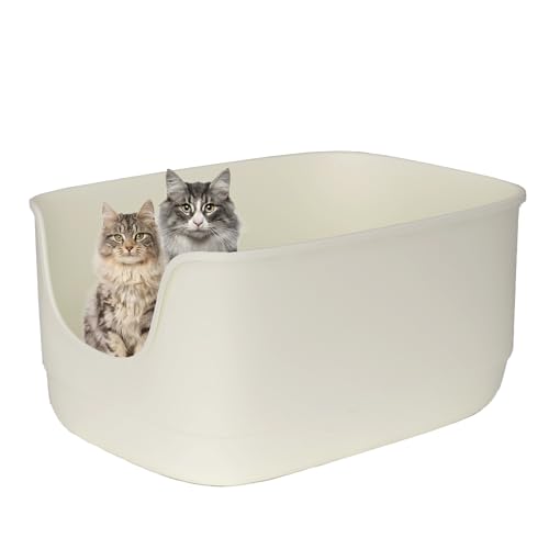 Suhaco High Sided Jumbo Cat Litter Tray Anti Splash Open Top Cat Litter Box 61 x 48 x 31 cm Extra Deep Large Cats Litter Trays for Multi Cats Toilet Low Entry (White)