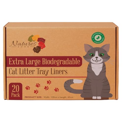 Natures Zone Cat Litter Tray Liners XL 20 Pack | Biodegradable Extra Large Litter Bags with Drawstrings | Helps Reduce Odours and Makes Cleaning Easy 100cm x 45cm