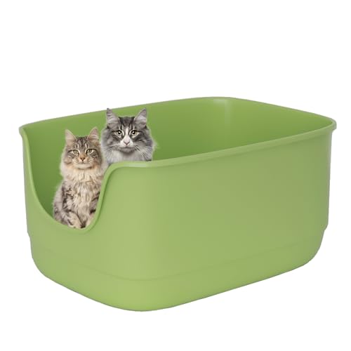 Vealind Extra Large Cat Litter Trays with High Sides and Low Entry Cat Litter Box High Back 64 x 45 x 33 CM, 100% Leak Proof Anti Splash Cats Litter Box XL (Green)