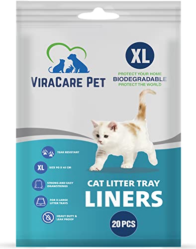 20 x Cat Litter Tray Liners Extra Large | With Drawstrings | Biodegradable | Heavy Duty And Leak Proof | For X-Large Litter Trays | Cat Litter Bags | Size 90x45 cm | 2 Mil Thickness | (1 Pack of 20)