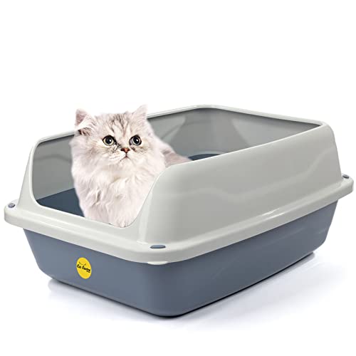 Suhaco High Sided Jumbo Cat Litter Tray Anti Splash Open Top Cat Litter Box 61 x 48 x 31 cm Extra Deep Large Cats Litter Trays for Multi Cats Toilet Low Entry (Grey)