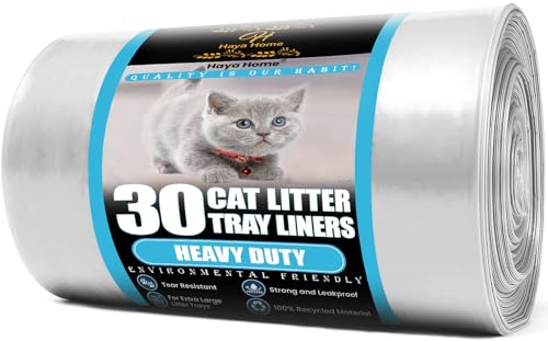 Haya Home Eco 30 XL Extra Large Heavy Duty Cat Litter Tray Liners on a roll Scratch Resistant Plastic Bags Environmentally Friendly 100% Recycled Material