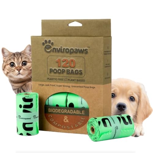 Enviropaws Biodegradable & Compostable Cat Poop Bags - 120 Dog & Cat Litter Bags (8 Rolls of 15 Bags) for Cat Waste - Leak Proof; Super Strong; Unscented; Extra Thick & Large Dog Poop Bags