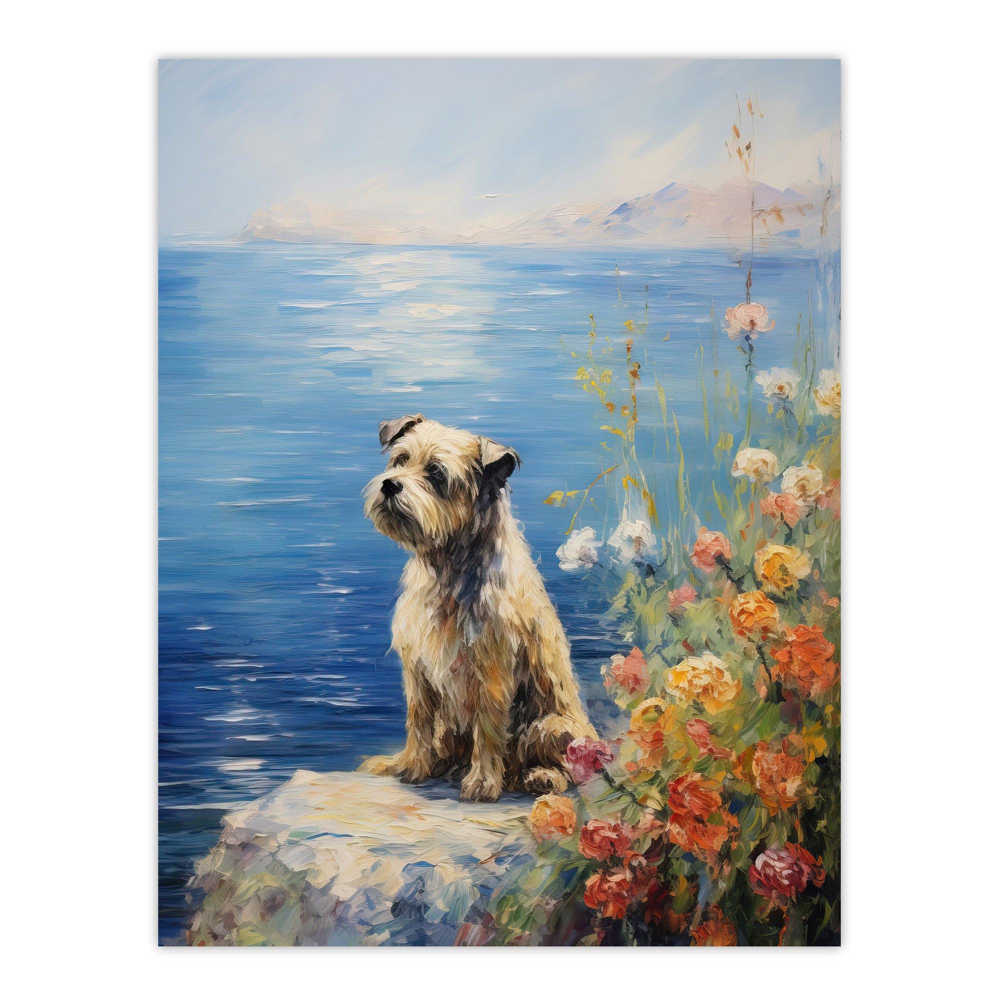 Border Terrier On Coastal Cliff Claude Monet Style Dog Oil Painting Extra Large XL Unframed Wall Art Poster Print