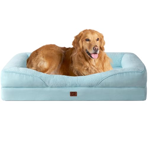 EHEYCIGA XL Dog Bed Memory Foam, Extra Large Orthopedic Dog Beds Sofa with Sides and Waterproof Liner, Pet Couch with Washable Removable Cover and Non-Slip Bottom, 106x76x19cm, Baby Blue
