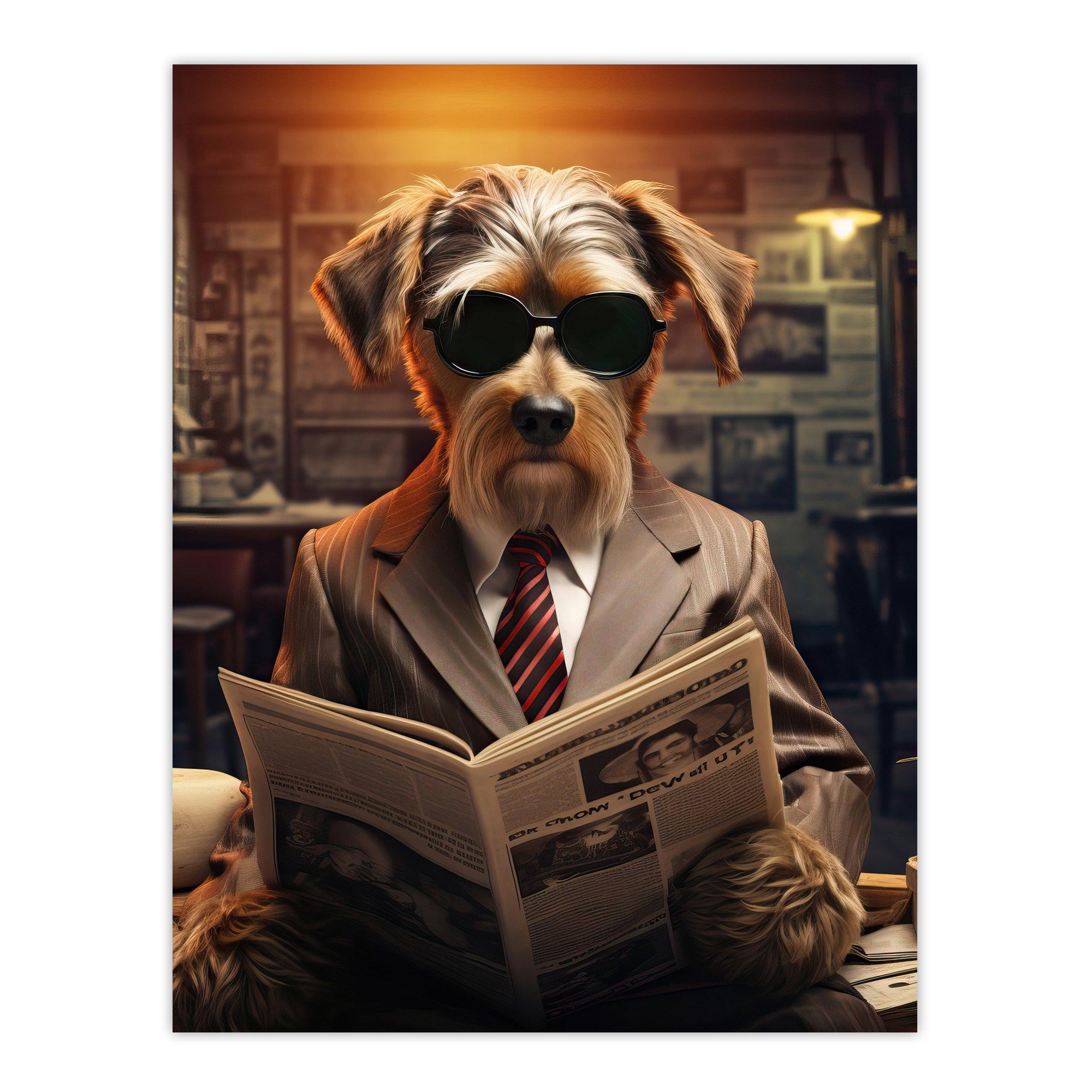 Dressed To Impress Terrier Dog In Sunglasses Reading Newspaper In Coffee Shop Cafe Fun Extra Large XL Unframed Wall Art Poster Print
