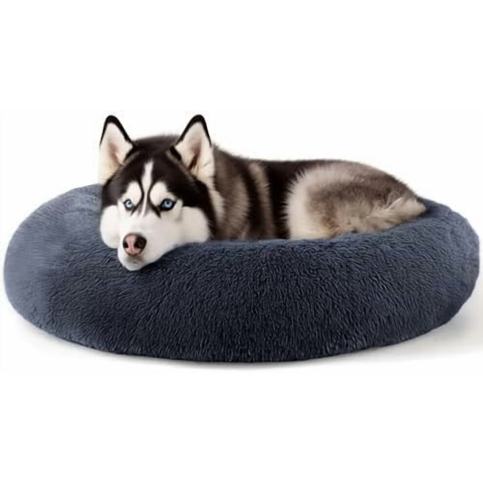 YOJOGEE Calming Donut Dog Bed for Large Medium Dogs, Fluffy Anti Anxiety XXl Dog Beds Extra Large Washable Puppy Bed Non-Slip Plush Cuddler Warming Round Faux Fur Pet Bed