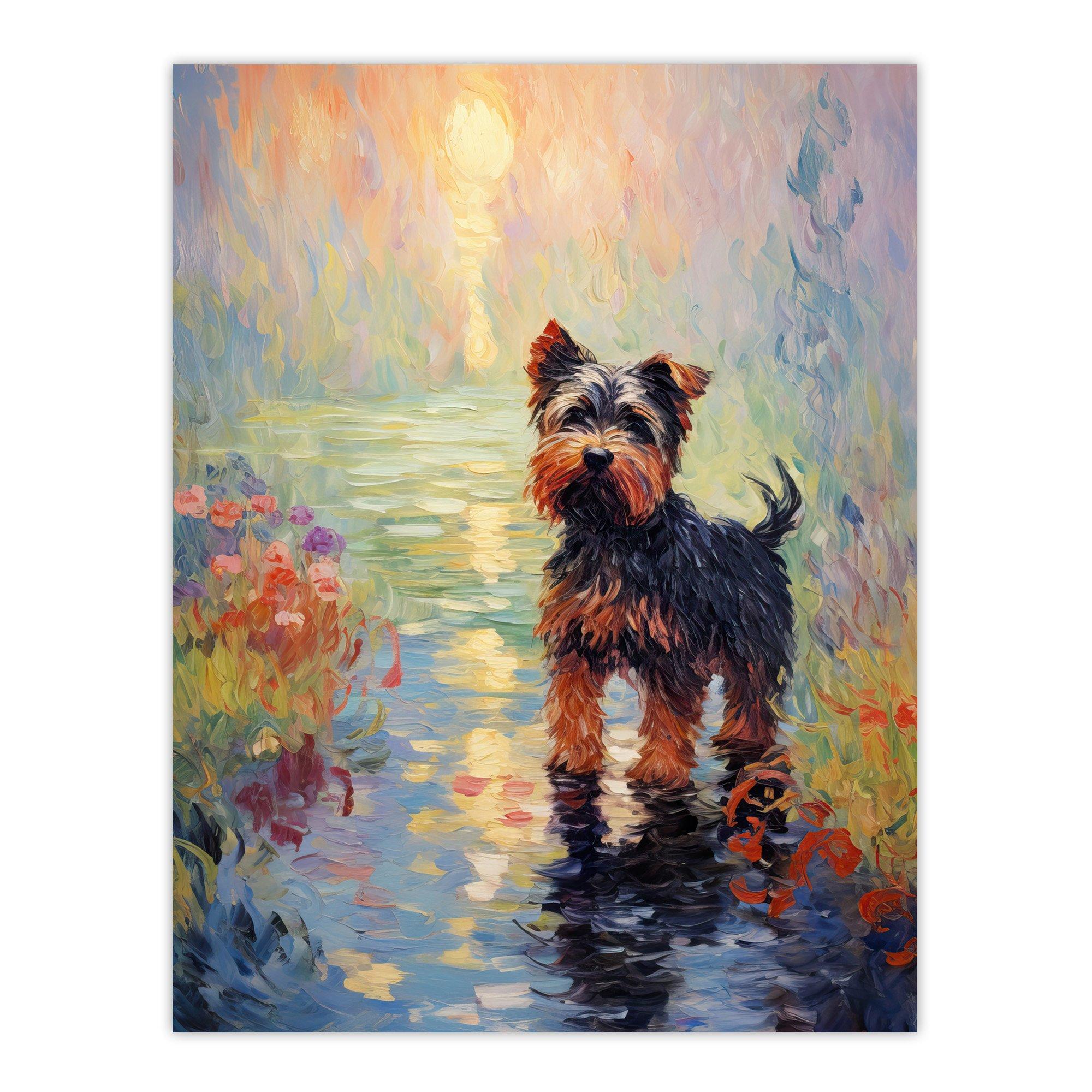 Yorkshire Terrier Claude Monet Style Dog Oil Painting Sunrise Walk By Lake Extra Large XL Unframed Wall Art Poster Print