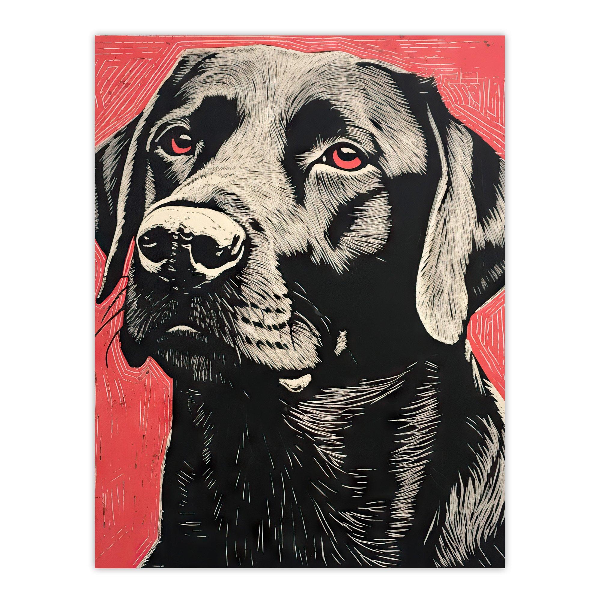 Black Lab Labrador Dog Portrait On Coral Backdrop Lino Risograph Riso Extra Large XL Unframed Wall Art Poster Print